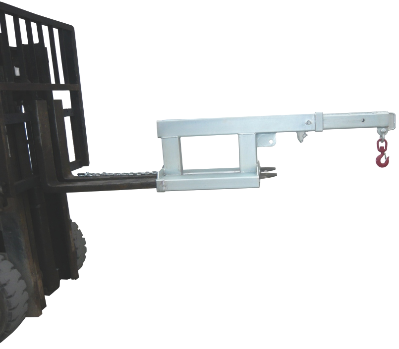 フォークリフトを移動式クレーンとして活用するアタッチメントです。標準の基礎型(伸縮式)をはじめ、強化された加強型、重荷重対応、角度調整機能付きの円管型など、現場の用途に応じた9種類の専用シリーズを展開しています。
